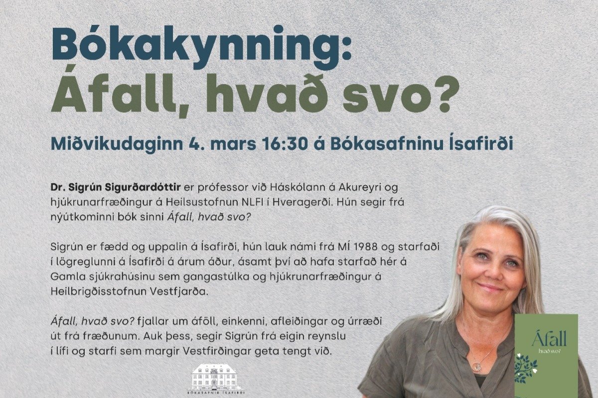 Áfall, hvað svo? fjallar um áföll, einkenni, afleiðingar og úrræði út frá fræðunum. Auk þess, segir Sigrún frá eigin reynslu í lífi og starfi sem margir Vestfirðingar geta tengt við.