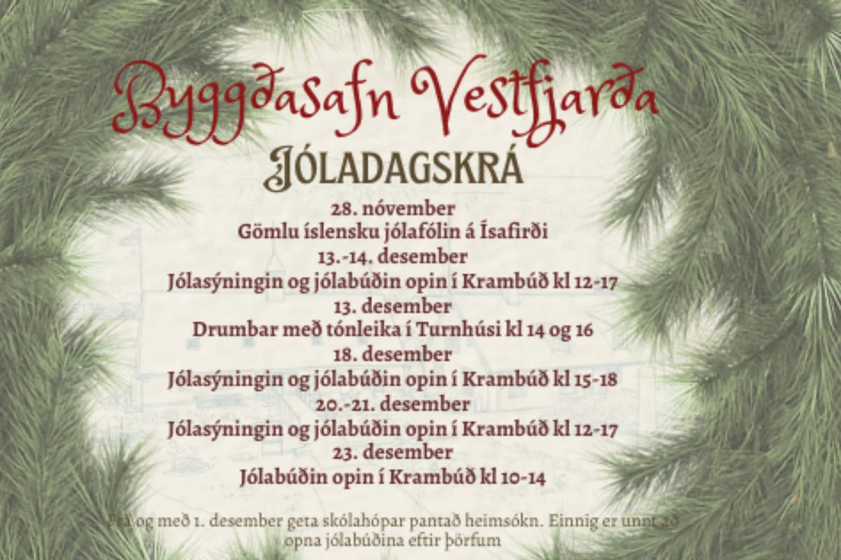 Jólin koma í Neðsta! Með heitu súkkulaði, smákökum og jólabúð. Kíktu til okkar helgina 13.-14. desember og skoðaðu jólasýningu sem starfsfólk safnsins hefur sett upp í Krambúðinni. Njóttu þess að eiga huggulega stund með börnunum á aðventunni.