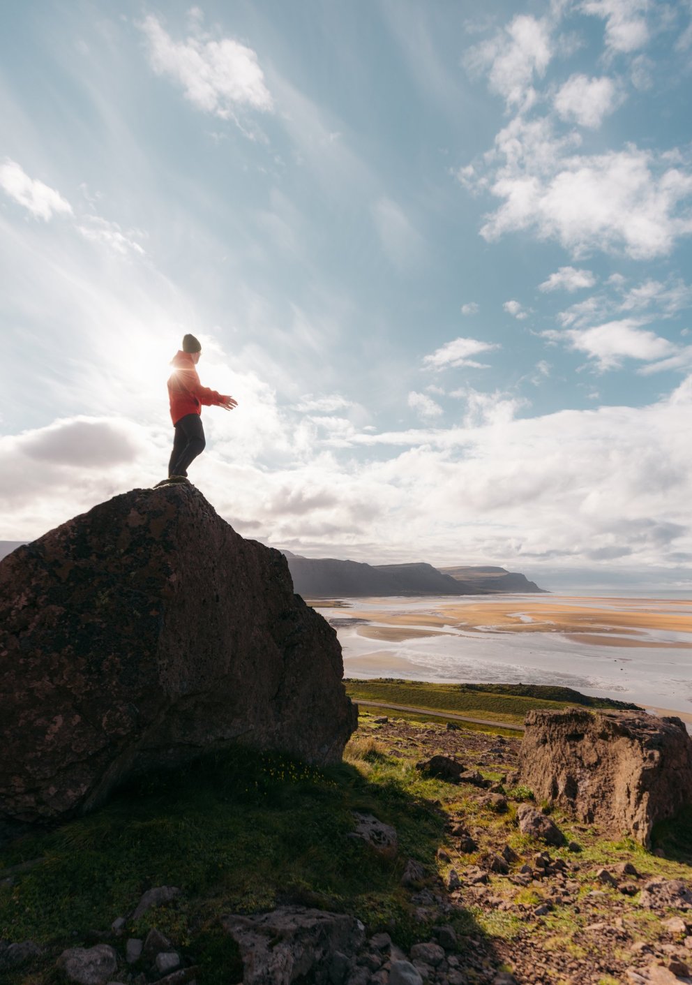 Head up towards the sky to viewpoints, mountain passes, hiking routes/ tours and winter skiing. Examples include: Bolafjall; Kleifabúi statue at Kleifaheiði Pass; Dynjandi waterfall; the experience of flying into Ísafjörður; winter skiing; having a guide take you into the wild; hiking up to the Trolls seat, Naustahvilft or hike the old road to Bolungarvík.